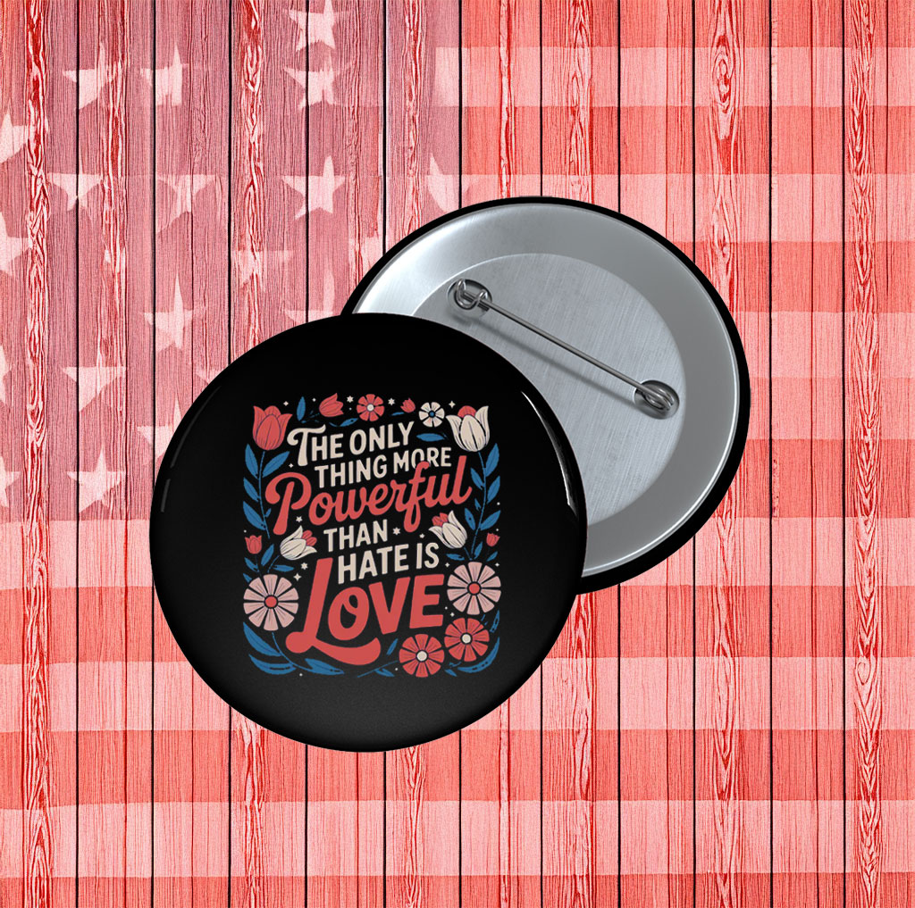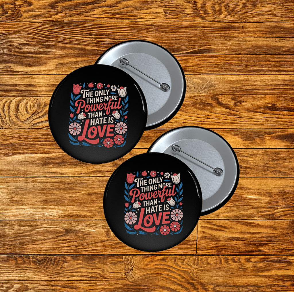Only Thing More Powerful Than Hate Is Love Floral Pin Button