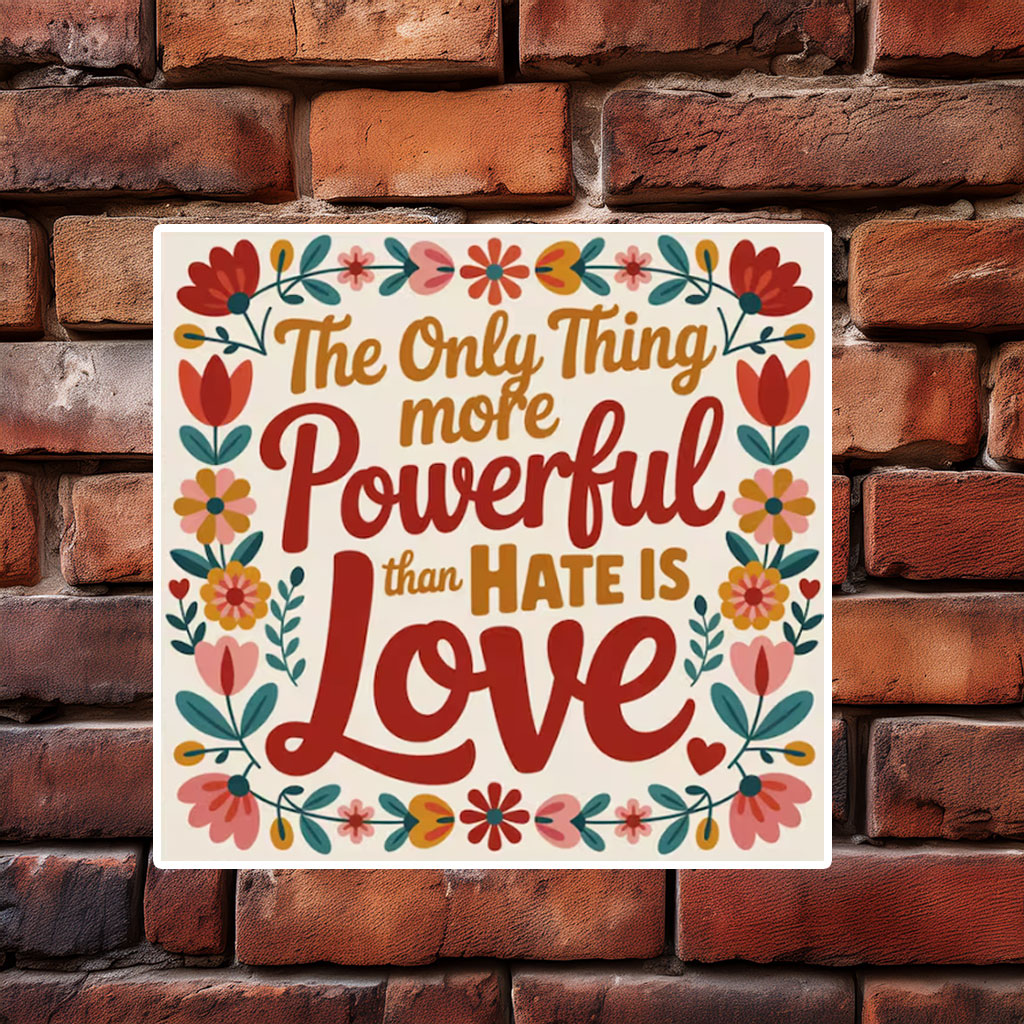 The Only Thing More Powerful Than Hate Love Bottle Sticker