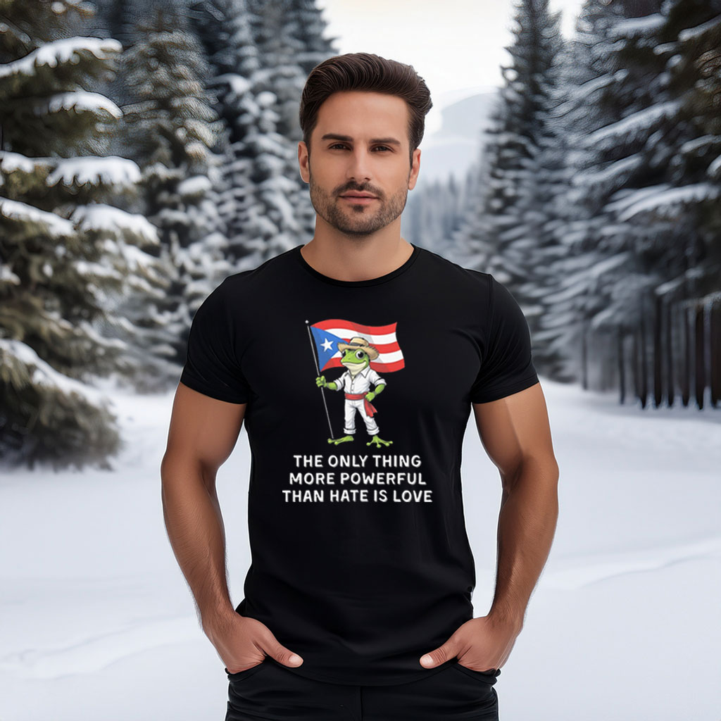 The Only Thing More Powerful than Hate Love Puerto Frog Shirt